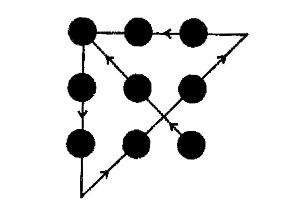 Without lifting your pen from the paper, draw 4 straight lines which go through each of the nine dots exactly once.
